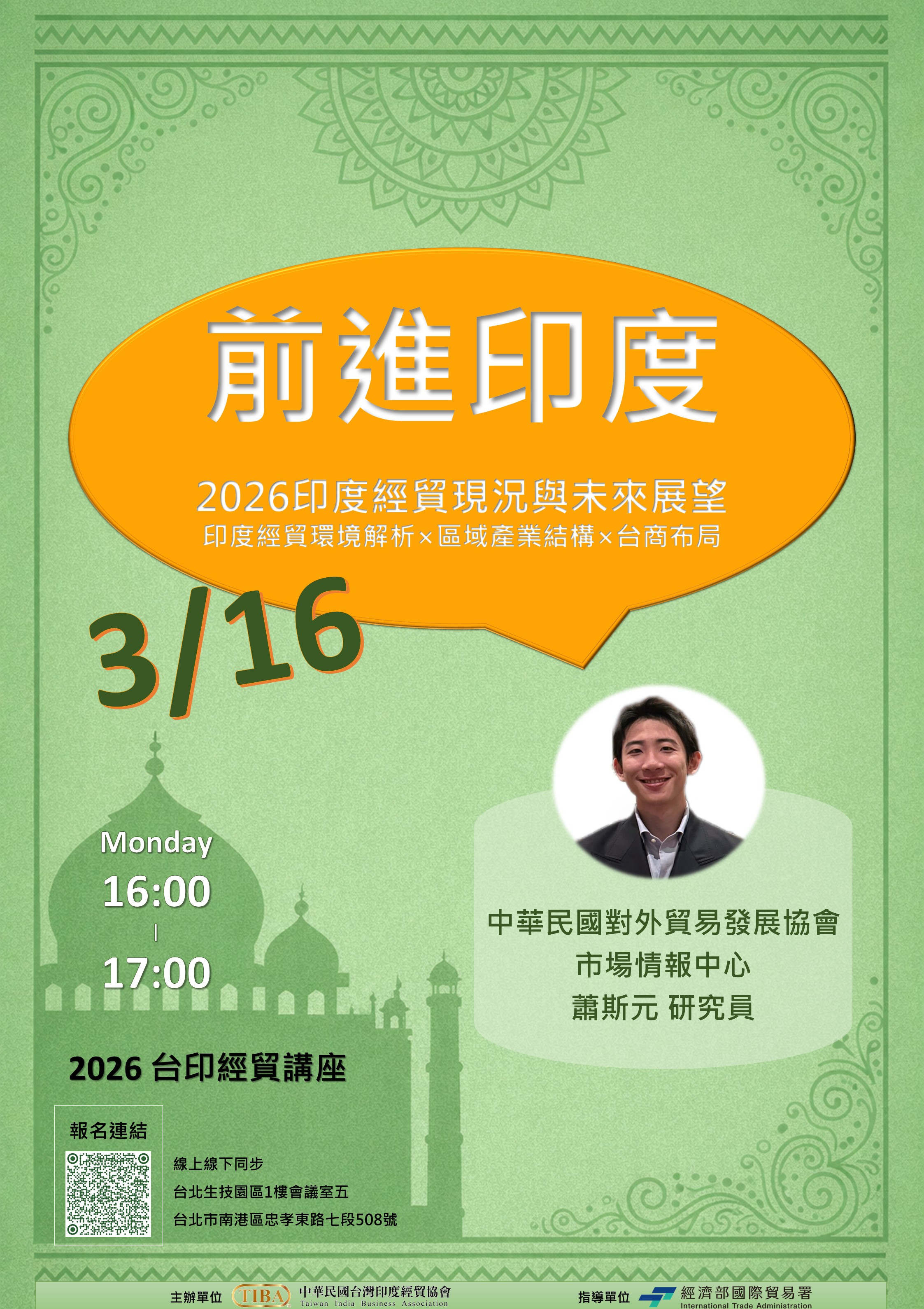 | 活動名稱 | 【台印經貿講座】前進印度—2026印度經貿現況與未來展望 |