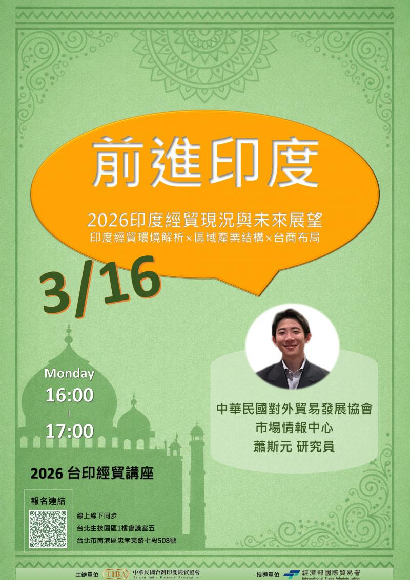 【台印經貿講座】前進印度—2026印度經貿現況與未來展望